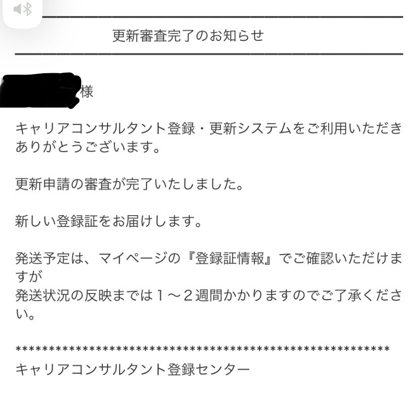 1ヶ月前に申請したキャリアコンサルタントの更新が承認されたみたいです!