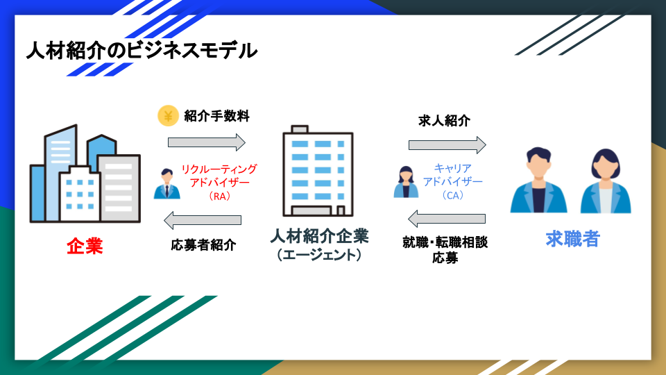 まずはエージェントサービス(人材紹介)についてのビジネスモデル=仕組みについてご紹介します。